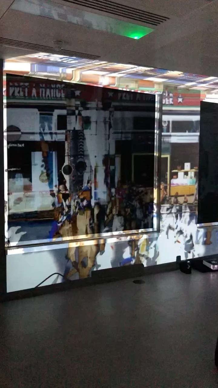 The fascination with the Chinese scroll paintings was a trigger to create a photographic scroll. This was a bus journey from West to East London that ended up as 200 meters of stitched panorama images captured on the iPhone, which was then used as a knitting thread to create Glitchland. Glitchland is an observation of the city of London with all its excitements and chaotic movements. Dimensions: 200 × 200 cm